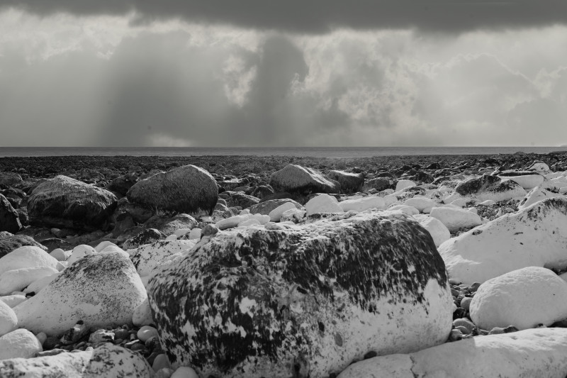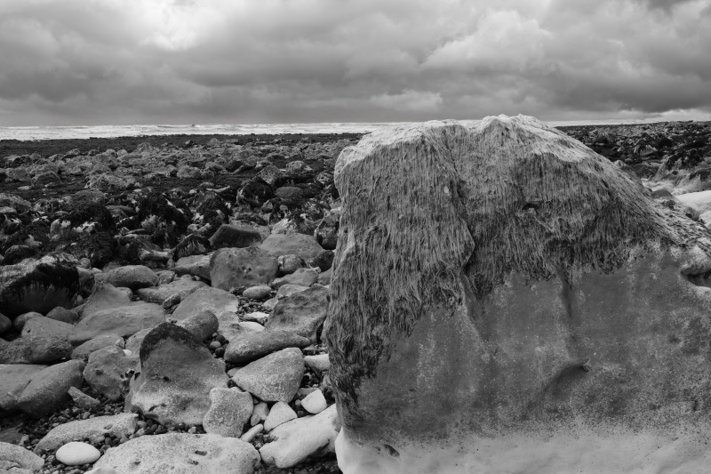 그곳의 바위들은 희고 회색빛으로 변색되어 있었다. 수천 번의 밀물과 썰물, 수만 번의 바람과 파도, 그리고 그 위에 드리운 구름의 그림자들. 그 모든 것이 바위를 깎고 닳게 하며, 이끼를 입히고, 다시 씻어내는 과정을 반복하고 있었다. 그 반복은 단조로움이 아니라, 끊임없이 새로움을 생성하는 과정이었다. 나는 그 바위들을 바라보며, 생명이 없는 존재에게서 가장 강렬한 생명감을 느꼈다.
